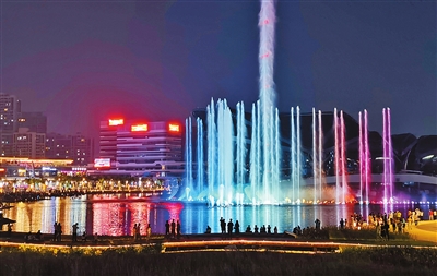 伴随着激昂的音乐和投影灯的色彩变换,金湾中心湖内的3个环状喷泉和穿插其间的水柱“跳”出了灵动的舞蹈,不久后,其所在的中心湖整体工程就将进入竣工验收阶段。一旁形如展翅飞鸟的金湾市民艺术中心外,珠海华金开发建设有限公司项目副经理黄兆辉正和同事们为最后的竣工做冲刺准备。