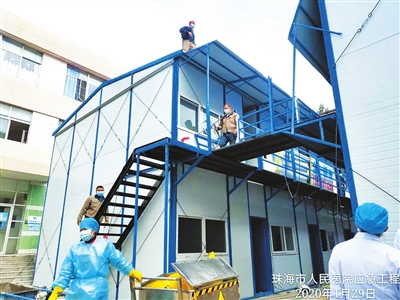 180小时日夜兼程,300余人次“逆风”前行……在与疫情的角力中,建设者们跑出令人惊叹的“珠海速度”。1月26日10时,完成团队组建;1月28日14时,第一栋隔离病房板房搭建完成;1月29日16时,第二栋隔离病房板房落成;2月2日21时,隔离病房验收移交院方……一个个时间节点,奏响了防疫阻击战鲜明的鼓点。